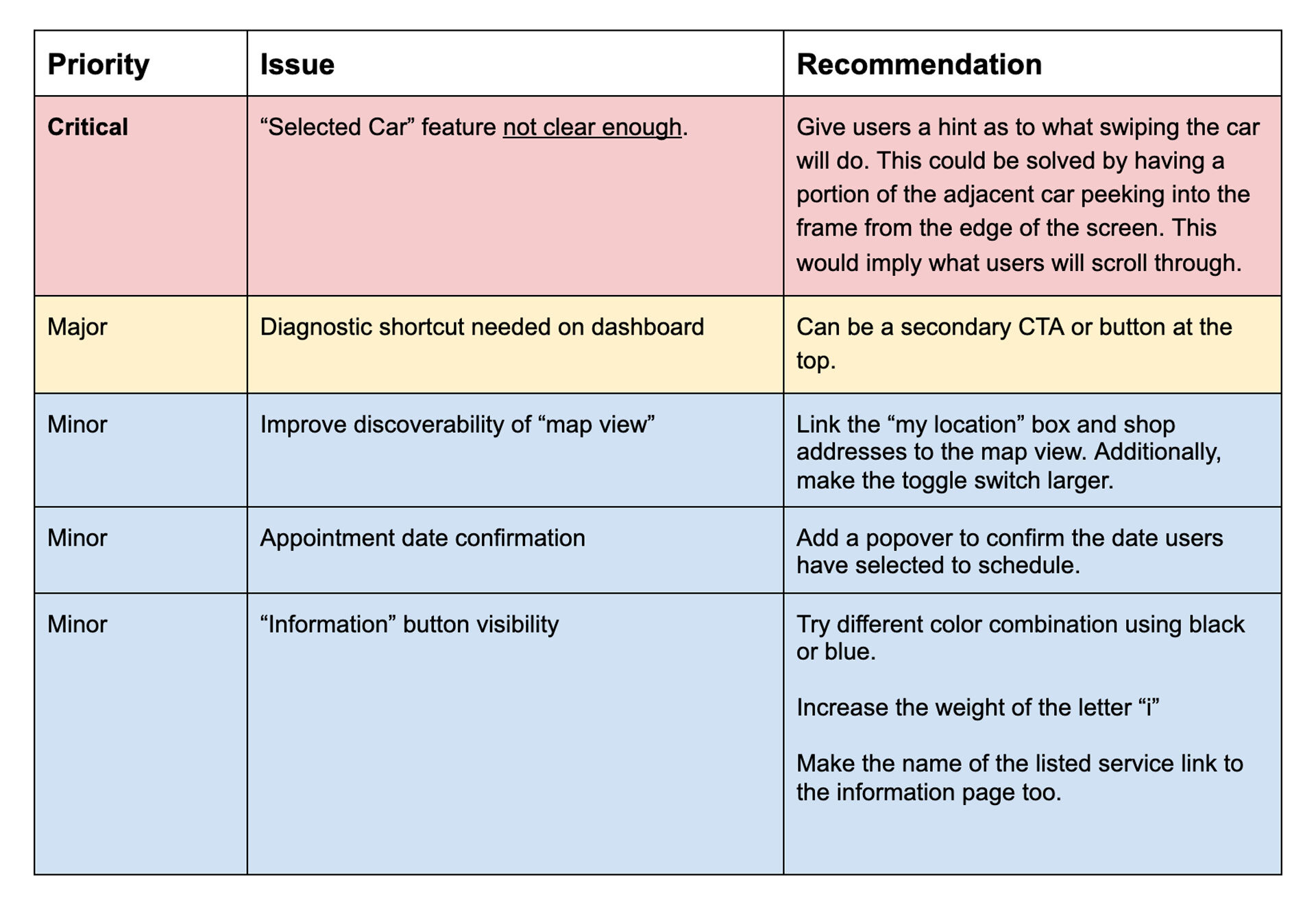 I overcame this gap by conducting a 1-day “research sprint”. I identified three competitors who currently operate on a combined B2B2C platform: Repair Pal, Your Mechanic, and Carcility. If I could find live examples of the features I was exploring on any one of their platforms, I could objectively prove what was possible and what wasn’t. I used this method to cross-reference every feature I explored to ensure my potential solutions were feasible. This solution was by no means ideal, but it enabled me to take an evidence-based leap over the gap I was facing and allowed the project to continue with confidence.