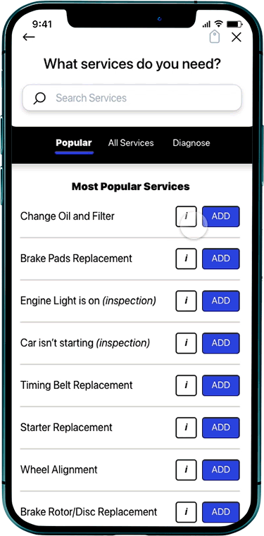 The list of all possible services was too long for the original format and the terminology was complicated. I accounted for this by splitting the “services” tab into two independent tabs: popular services and all services. Paired with the search feature, this adjustment provided users with more accessible ways to address their car repair needs.